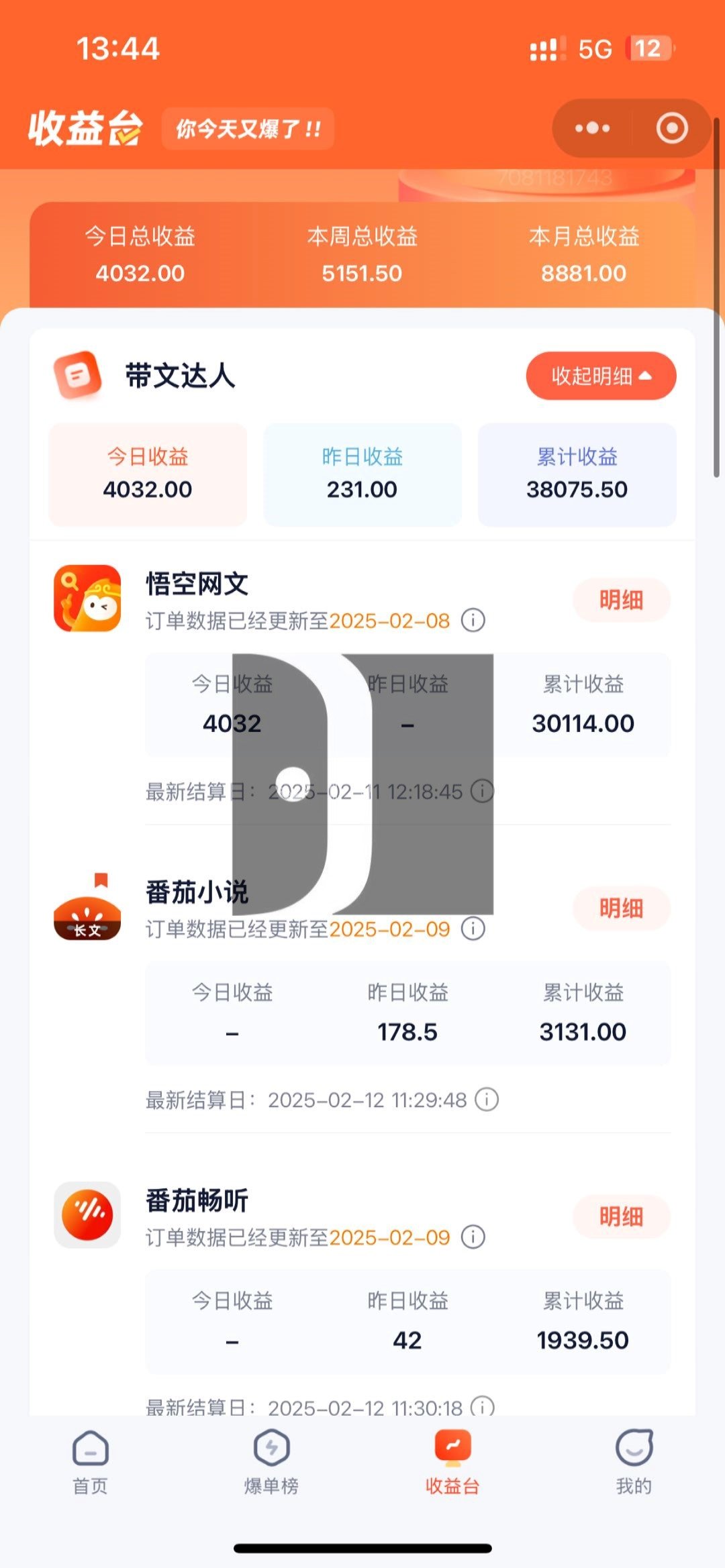 部分平台开通了日结,其余的每周六结算一次,可自查出单数据,财务会进行核对打款,打款方式为支付宝或银行卡(最终解释权为右豹平台所有)